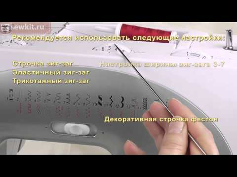 Лапка позволяет выполнять круговые узоры, чей размер можно уменьшить или увеличить. Для дополнительного декоративного эффекта попробуйте шитьё двойной иглой и с нитками разных цветов.