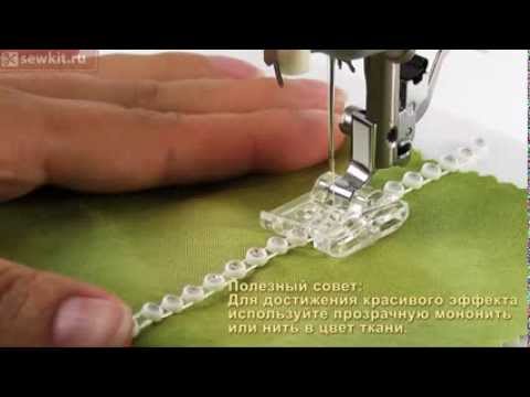 Используя особую конструкцию этой лапки, Вы сможете легко притачать к своему изделию нить бисера или бусин. Подошва лапки имеет специальный желобок, чтобы свободно пропускать бусинке диаметром до 4 мм.